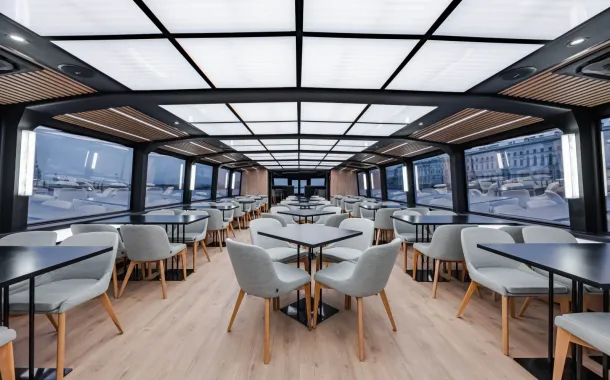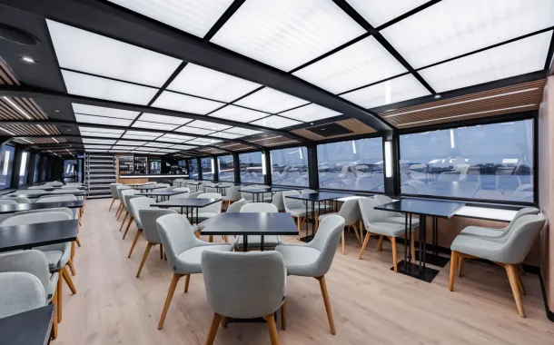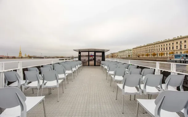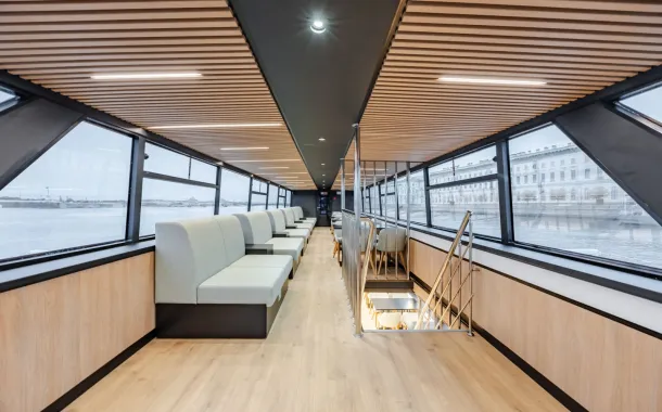 Прогулка проходит на двухпалубном теплоходе с отапливаемым салоном и панорамными окнами. При желании вы можете приобрести пледы в баре на борту.