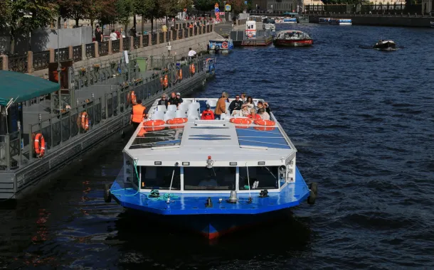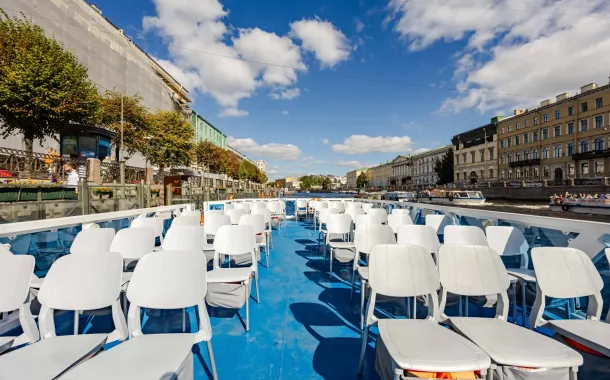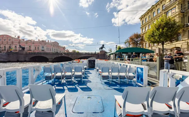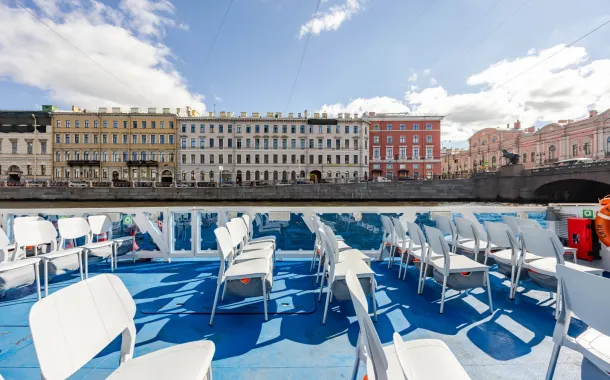 Теплоход: Экскурсия проходит на однопалубном теплоходе со стеклянной крышей и открытой палубой, с которой можно легко насладиться всеми прелестями речной прогулки. Если же вы разместитесь на закрытой части корабля, то из панорамных окон вас ждет не менее прекрасный вид на Северную столицу.