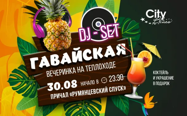 30 августа в 23:30 приглашаем вас на незабываемую вечеринку под разводными мостами в Гавайском стиле! Забудьте о серости будней и погрузитесь в атмосферу тропического праздника прямо в сердце Северной столицы.