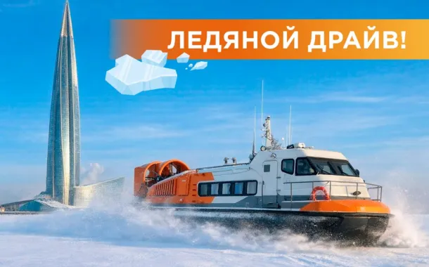 Место отправления: Причал Петропавловская крепость (Мытнинская наб., 3) (карта) Теплоход: Судно на воздушной подушке ТайфунПредставляем захватывающий зимний маршрут на воздушных подушках «Ледяной Драйв» — идеальное сочетание скорости, льда и красивейшей зимней панорамы Петербурга!