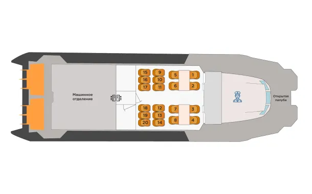 На борту скоростного судна на воздушной подушке организована свободная рассадка.