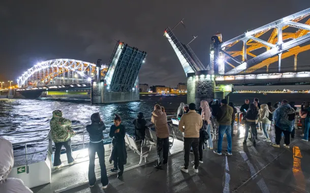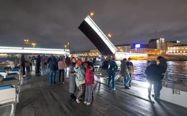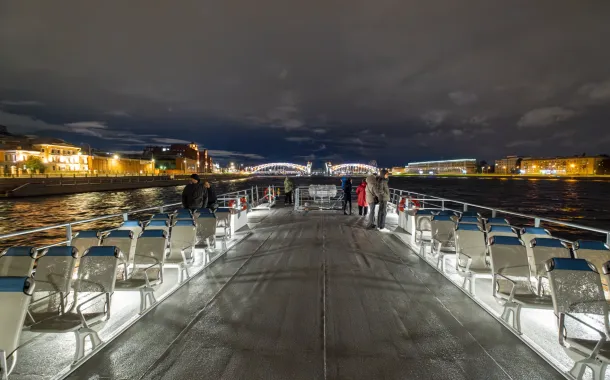 Во время маршрута вы увидите сразу 7 разводных мостов и панорамы ночного Петербурга — подсвеченные набережные, знаковые достопримечательности и главную акваторию города.