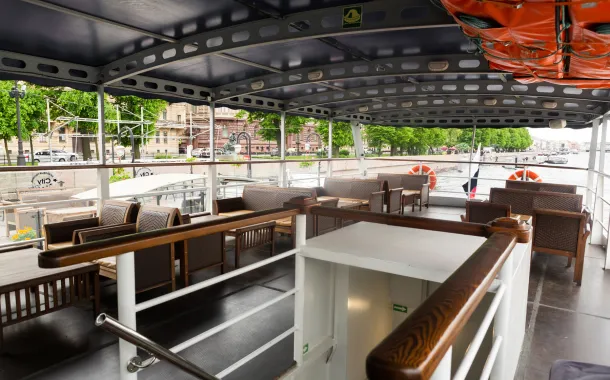 Две палубы с панорамным остеклением. Нижний зал в стиле аристократичного дерева. ВИП-салон с аркой, шторами и возможностью уединения. Верхний салон с максимальным углом обзора. Приватная и открытая палубы для прогулок на свежем воздухе.